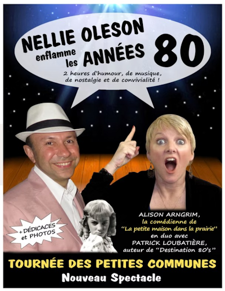 2 heures d’humour, de musique, de nostalgie et de convivialité, où Alison Arngrim promène son regard amusé d’américaine sur nos années 80 françaises… tout en laissant place par moments au regard malicieux de son alter ego Nellie Oleson.